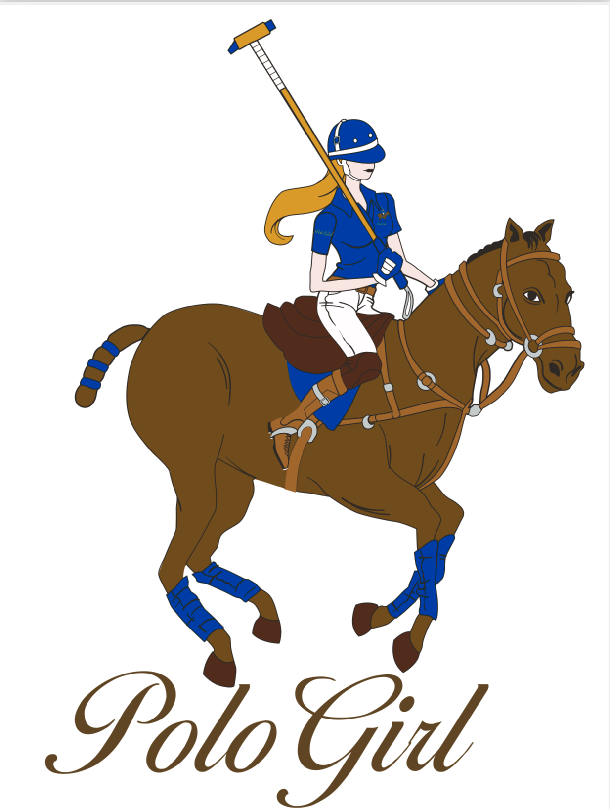 Polo Girl On Her Polo Pony Embroidered On Left Chest/ Polo Girl Mallets & Trophy Embroidered On Right Sleeve